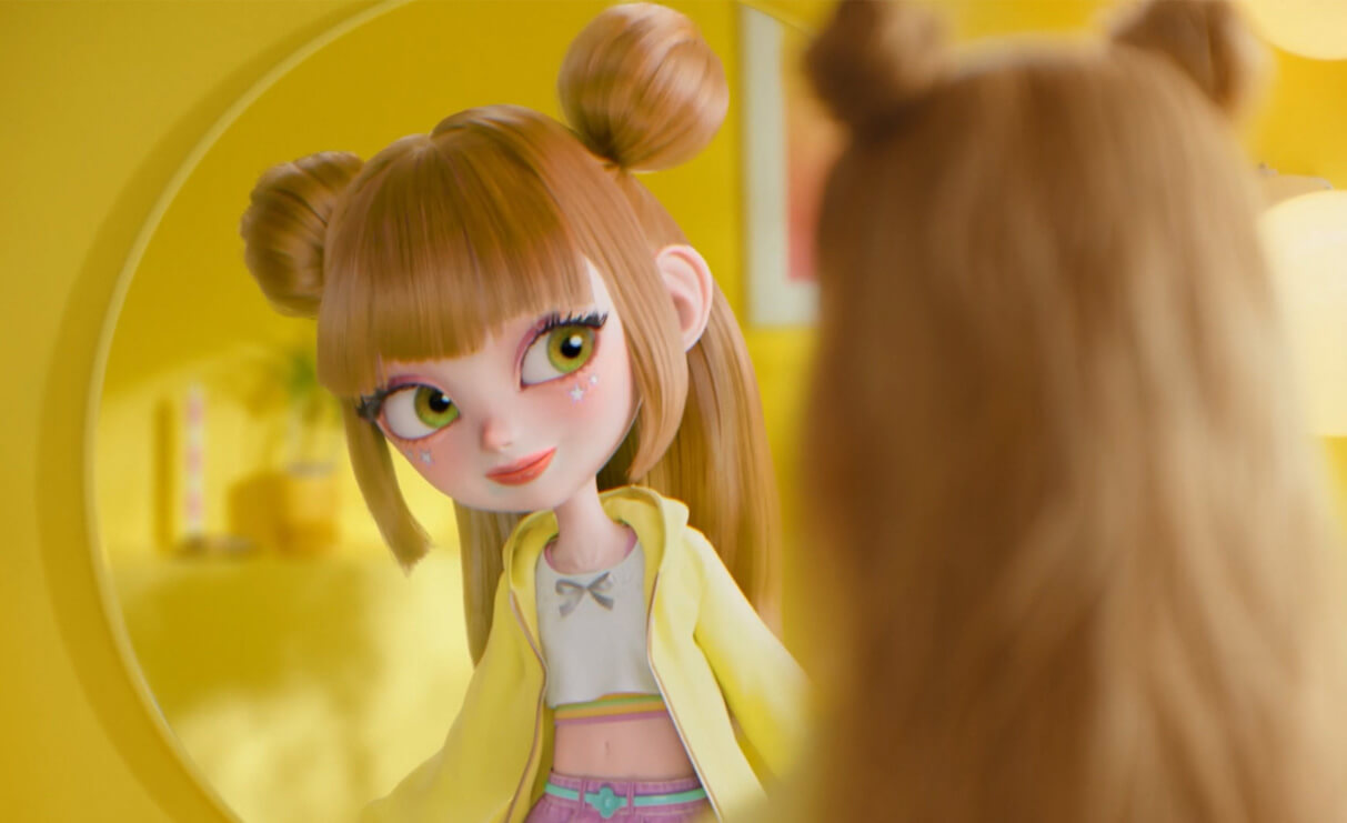 傷んだ髪に悩む一人の女の子を主人公としたストーリー。鏡の中に現れたもうひとりの自分に導かれ、シャンプーに触れた瞬間、彼女はCGで描かれた世界へと入り込んでいきます。